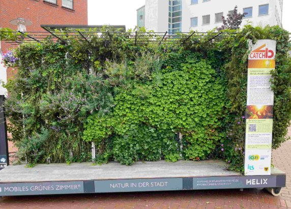 Dortmund hat zum Schutz gegen die Hitze ein grünes Zimmer eingerichtet. Das ist so eine Fahrbare Bühne, die auf einer Seite mit Grünzeug bepflanzt ist. Die Pflanzen sollen später auch über die Überdachung ranken, und so Schatten spenden.