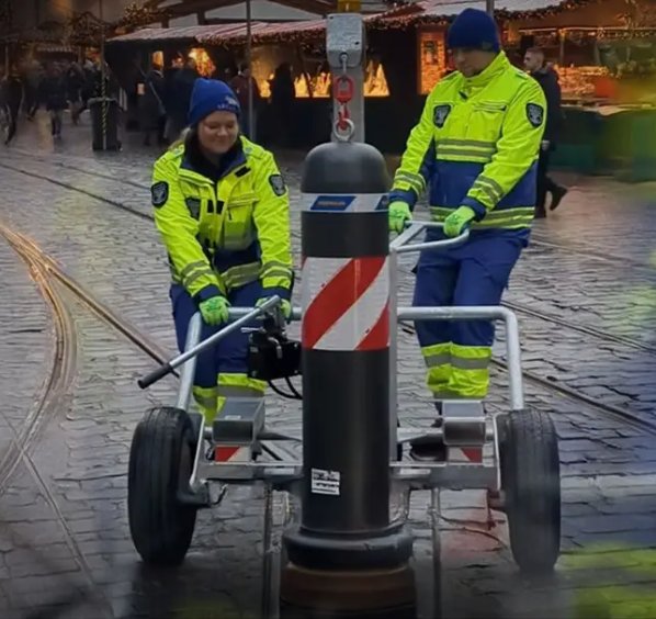 Manchmal ist es allerdings schwierig. In Augsburg verläuft nämlich die Straßenbahn durch den Weihnachtsmarkt. Also hat man an den Ein- und Ausfahrten bewegliche Poller eingerichtet. Die werden mithilfe von speziell dafür konstruierten Wagen bewegt. Bei jeder Straßenbahndurchfahrt, nach Angaben von RTL bis zu 64-mal in der Stunde. Dafür wird dann Personal aus der Verwaltung, wahrscheinlich Ordnungsamt, abgestellt. Das könnte der Job des Jahres werden. Nur so nebenbei, das ganze soll 300.000 Euro kosten.